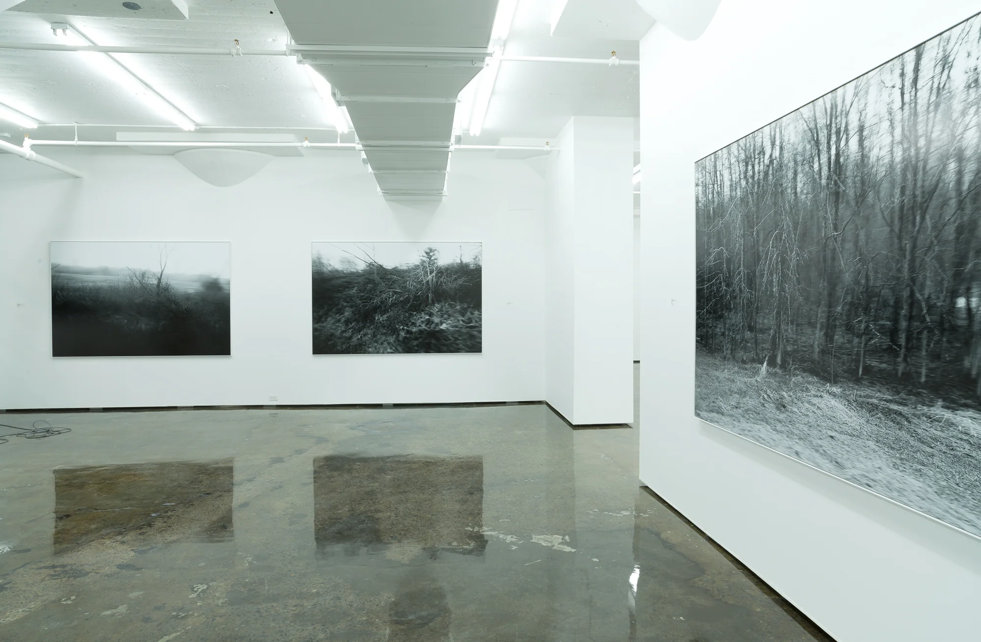 In Untitled Photographic Pictures, Andrew Wright explores points of intersection and exchange between several pictorial idioms and practices. Printed using some of the latest print-making technologies, these monumental pictures suggest the grandeur of classical painting, and raise the question of photography’s relationship with a tradition of producing and exhibiting large-scale gallery pictures. On the other hand, as a series of ‘straight-from-the-camera’ snapshots, this series was made using a uniquely photographic technique. The snapshot has become an important dimension of how we see and imagine the world today, and Wright contrasts this with the highly valued museum picture. The digital photographs themselves exhibit qualities that seem to emulate the effects of older lenses and photographic processes: inconsistencies, odd and unexpected optical effects, and the use of a pre-set, black-and-white treatment all contribute to evoking out-of-date, or even outmoded, pictorial concerns. The neglected and rural landscape captured in these photographs struggles to emerge as the subject of these pictures. Instead, Untitled Photographic Pictures explores an approach to photography in which ideas of the Romantic, the picturesque, and the monumental filter and condition our experience of the visible subject matter.