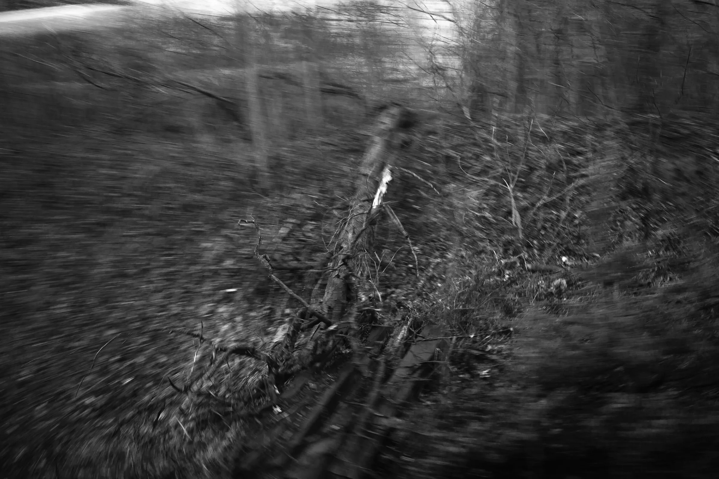 In this series of photographs, Wright opens up a rich interpretive space by taking the motif of the empty landscape and making it strange. Each photograph is a direct-from-camera snapshot taken through the window of a moving train. As he passes by the landscape, Wright makes a deliberate jerking motion with the camera that causes the otherwise clear, focused image to be interrupted. This destabilizing movement leaves the viewer continually distanced from the "original" landscape. Within the confines of the gallery space, these visual disturbances, or “knots,” are immediately apparent to the viewer; yet, the images, captured in the moment between documentation and abstraction, are not clearly revealed. At first glance – without consulting the exhibition text, for example – one might assume that the artist has digitally edited these images to arrive at an ideal formal state. However, the critical viewer will not read these photographs simply as either completely "untouched" or "altered," but will consider the ways in which the photographic impulse itself is always already held in a tension between composition and incident. The queerness of Wright’s arrival of the image is related to his broader interest in shifting the conversation away from representation or iconographic content and toward process itself.